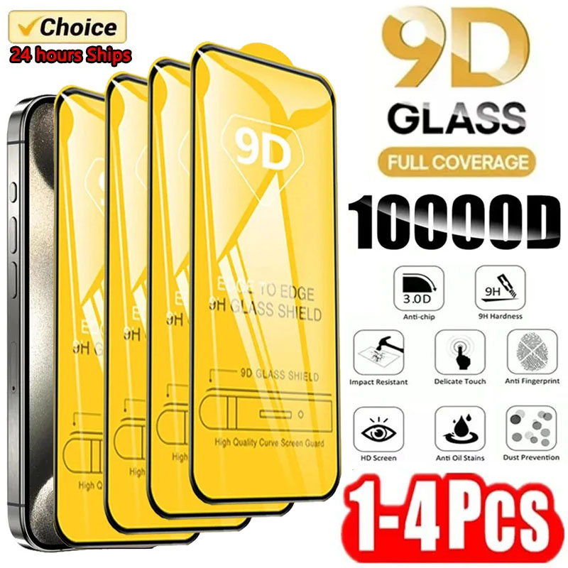 1-4PCS 9D Screen Protector Tempered Glass for IPhone 15 14 13 12 11 Pro Max Protective Glass for IPhone X XR XS Max 7 8 14 Plus