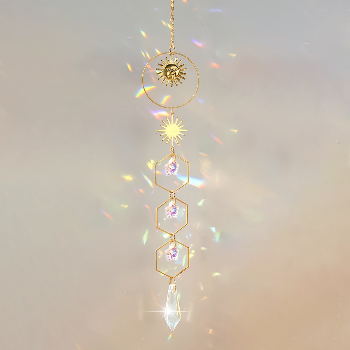 1 Piece Golden Sun Pentagram Crystal Chain Pendant Room Window Hanging Decoration Dream Rainbow Gift Catcher