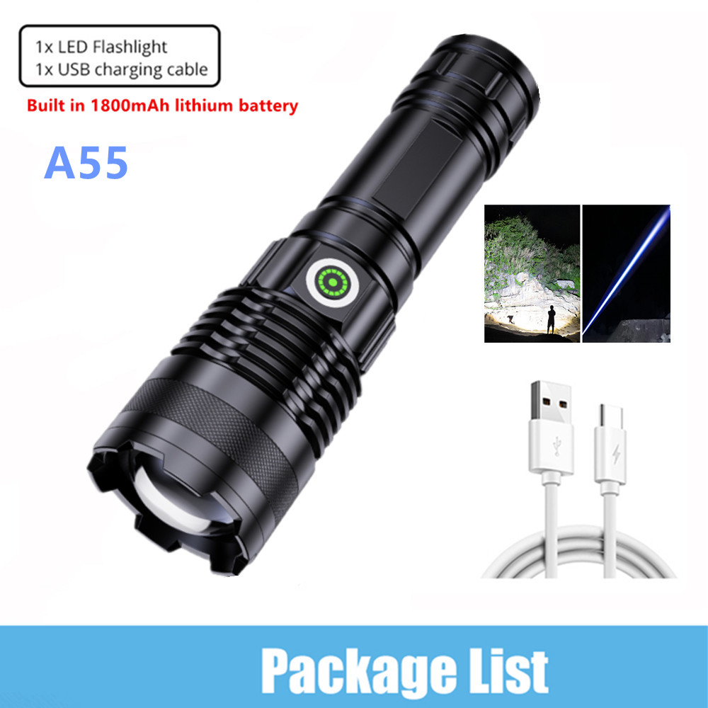 100000 Lumen Super Bright Spotlight Long Range LED Flashlight Builtin Battery USB Charging Waterproof Portable Camping Torch