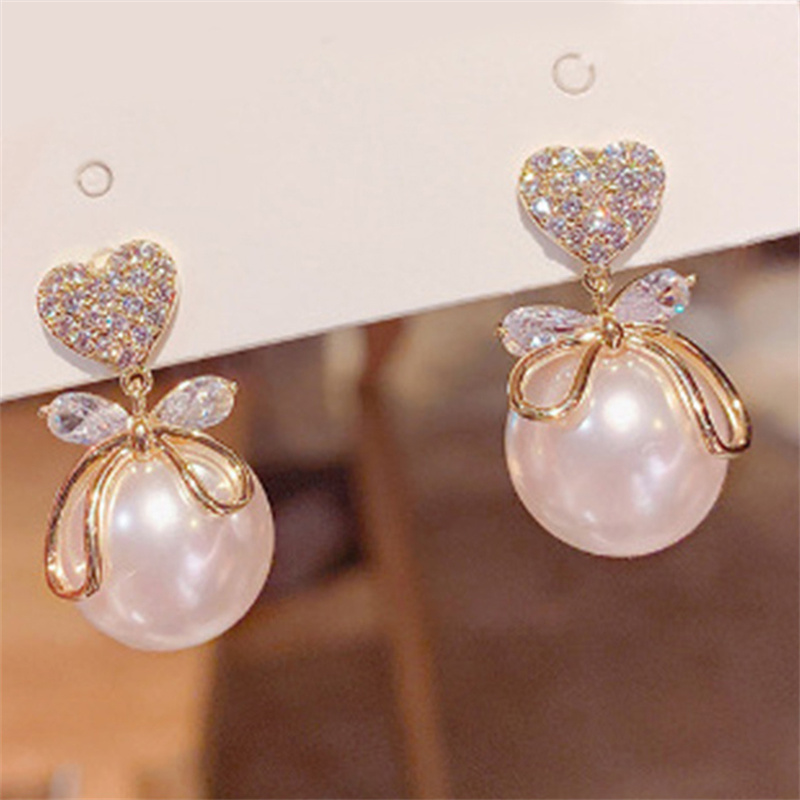 1Pair Minimalist Pearl Crystal Earrings For Women Temperament Fashion Rhinestone Flower Stud Earrings Party Wedding Jewelry