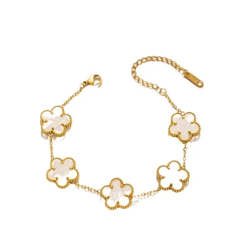 1Pc Trendy Five Leaf Flower Bracelet Copper Zircon For Woman On Party Wedding Fashion Cute Style With Colorful Adjustable Chain