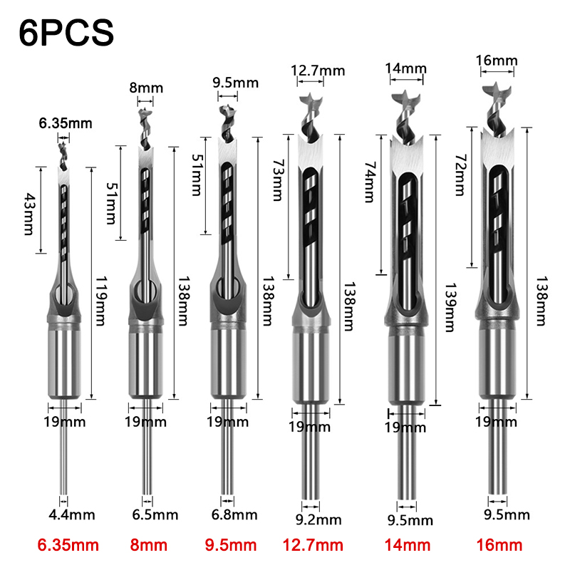 1Pcs 6-25mm HSS Twist Square Hole Drill Bits Auger Mortising Chisel Extended Saw for Woodworking Tools