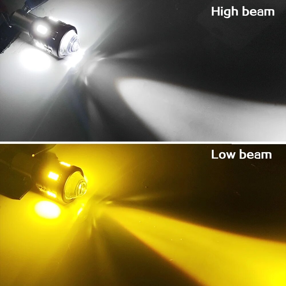1Pcs H4 LED Headlight BA20D Dual Color H4 Led Moto Motorcycle LED Lamp Lenses for Headlight Motorcycle Hi Lo Beam Yellow White
