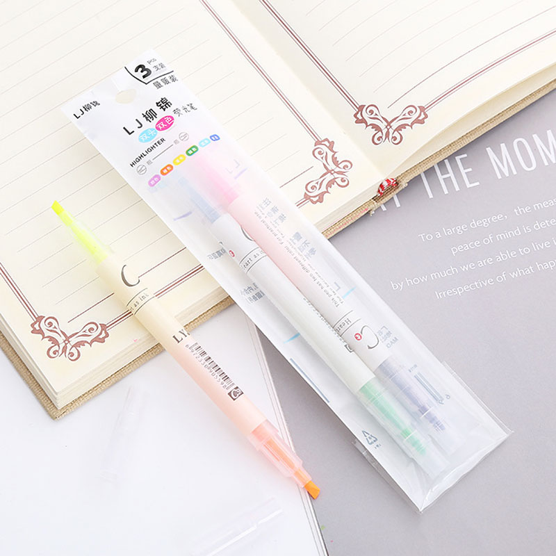 1set Double-ended Highlighter 6 Color Pointed Head / Oblique Head Large Capacity Planner Marker Pen Focus Marker Pen|