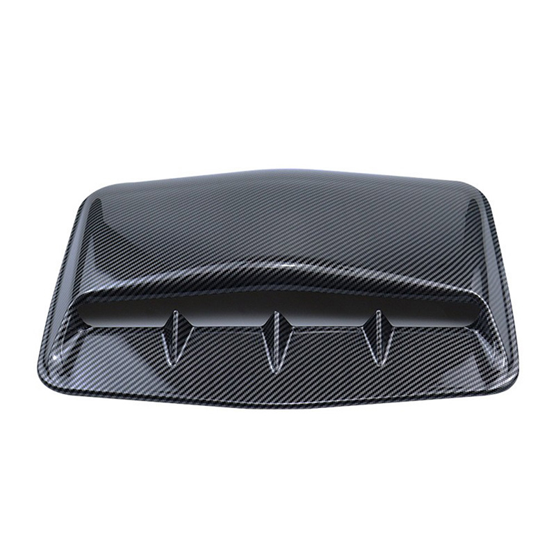 1x Black Carbon Fiber Type Auto Air Flow Intake Hood Scoop Bonnet Vent Cover Decorative Sticker Plastic Universal Fit Most Car