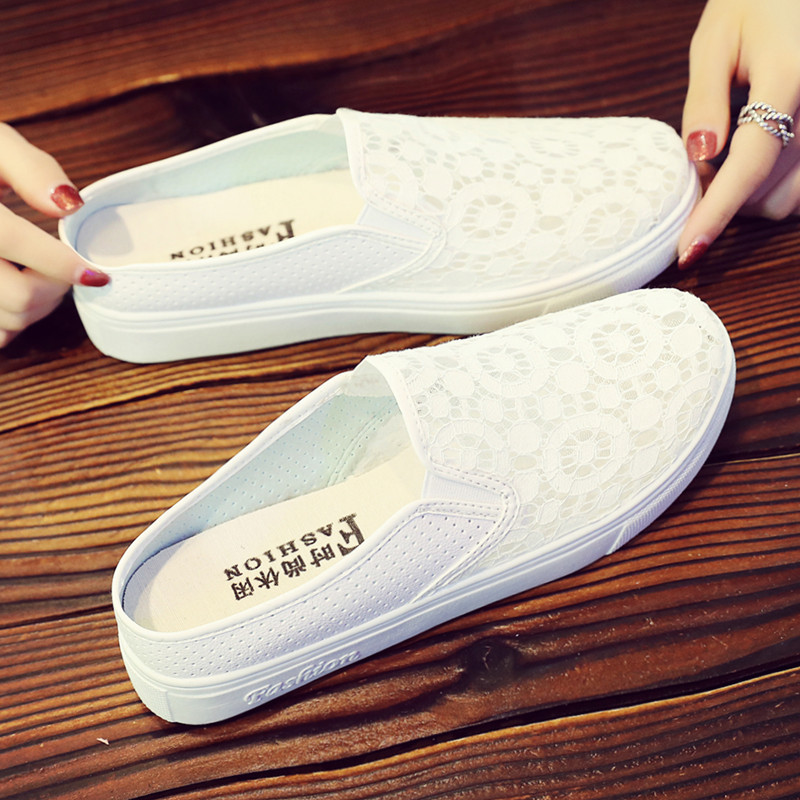 2024 New Half Slippers Womens Summer Korean Style Fashionable Outwear Toe Flat Slipon Small White Shoes Mesh Breathable