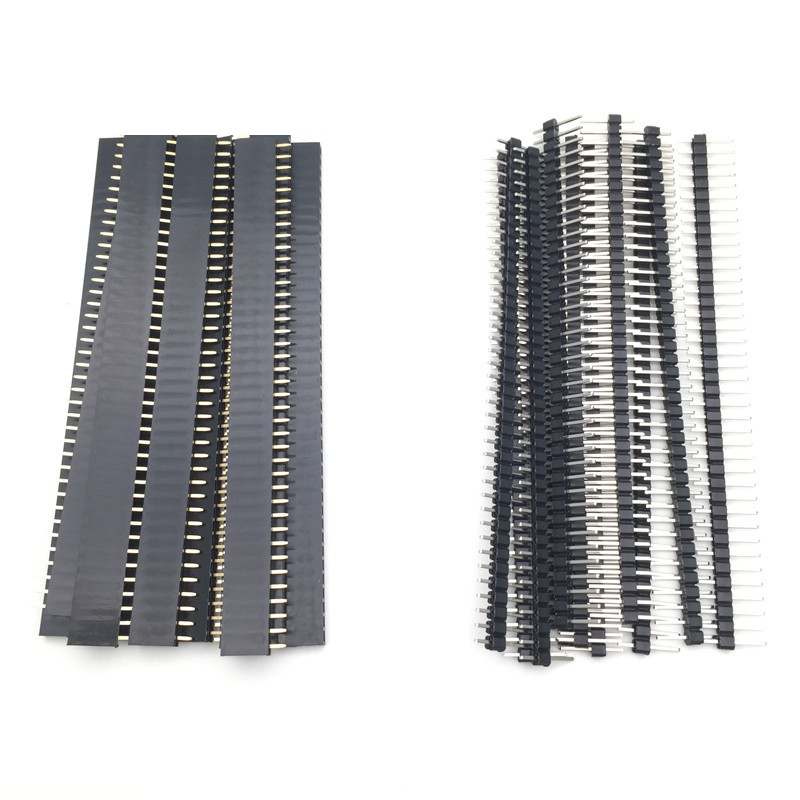 20pcs 10 pairs 40 Pin 1×40 Single Row Male and Female 254 Breakable Pin Header PCB JST Connector Strip for Arduino Black