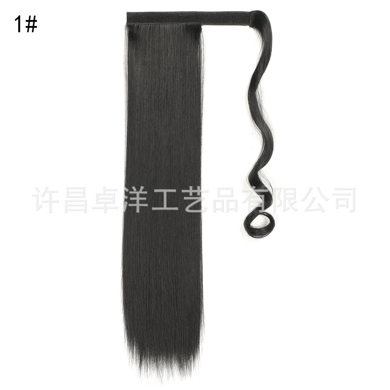 24 Inch Long Straight Ponytail Hair Clip In Synthetic Extensions Heat Resistant Hair Wrap Around Pony Hair Piece For Women