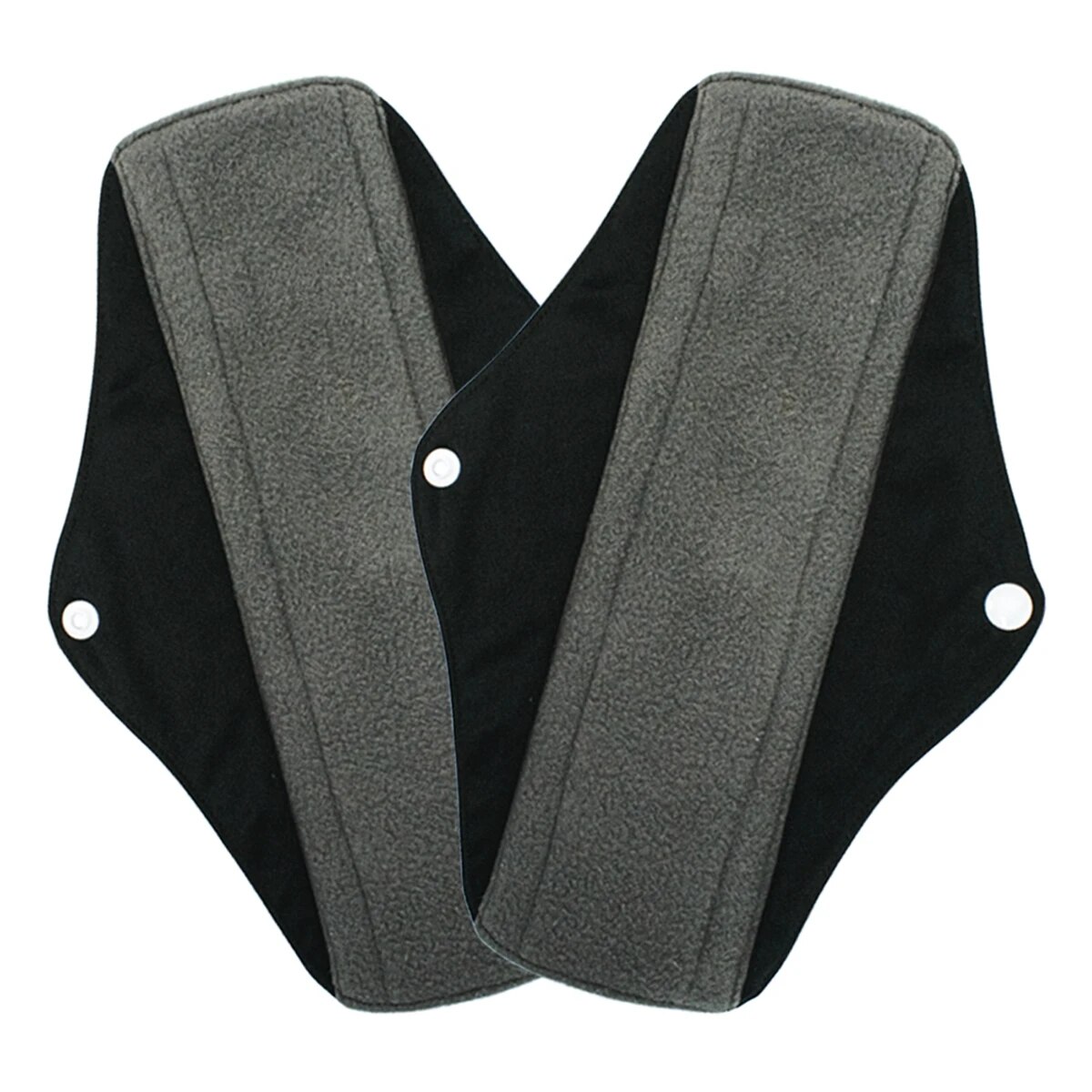 2pc Charcoal Menstrual Pads Sanitary Napkins Regular Flow Daytime Use Absorbent Waterproof Washable Reusable Sanitary Pads|