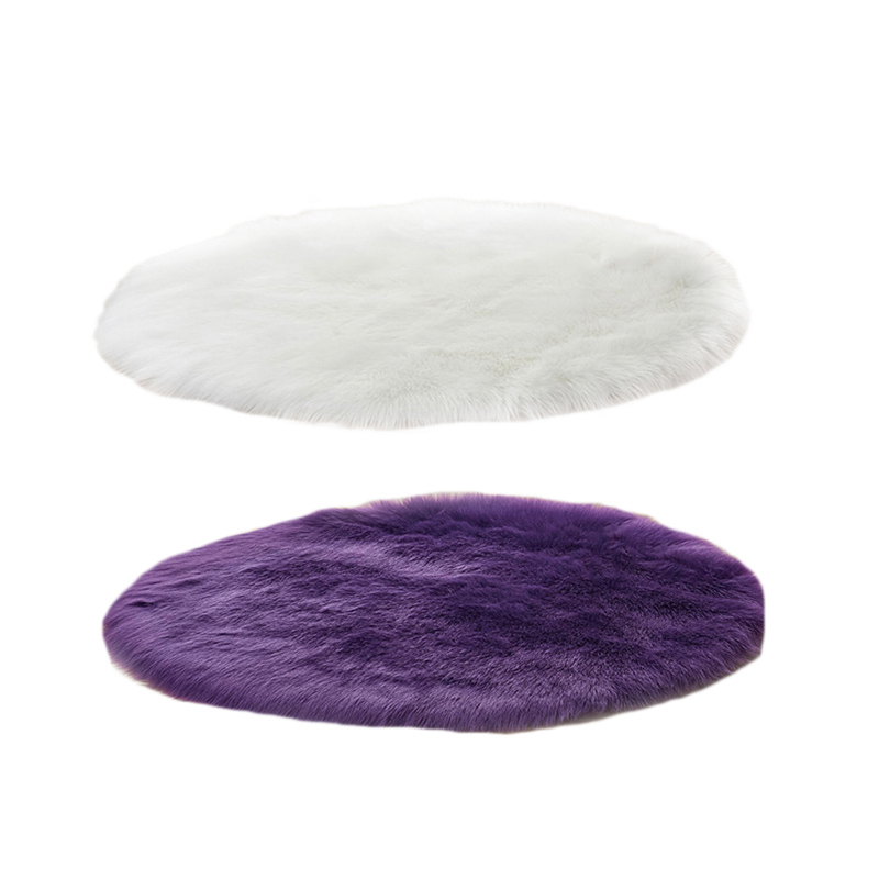 2Pcs Faux Sheepskin Wool Carpet 30 x 30 Cm Soft Longhair Decorative Carpet Cushion Chair Sofa Mat Round – White & Purple|