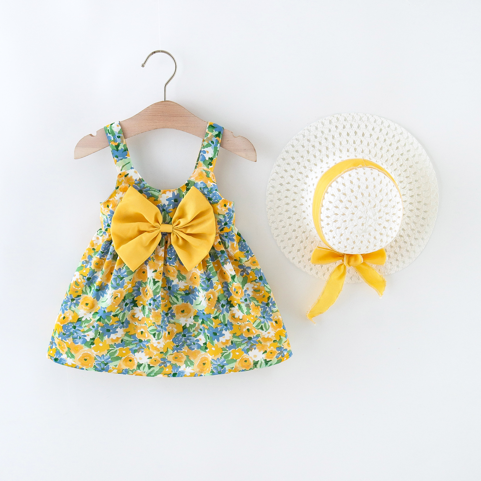 2Pcs/Set Flowers Baby Girl Dresses Summer Fashion Toddler Children Clothes Beach Smooth Dress Kid’s Costume Hat 0 To 3 Y