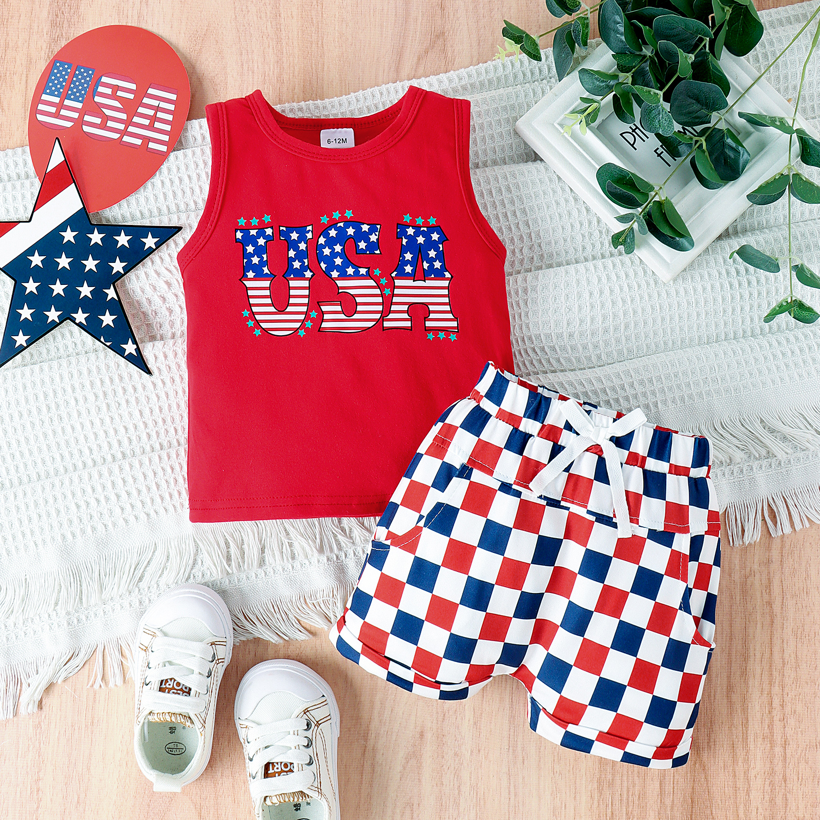 2PCS Summer 04 Years Old Trend Fashion Children Universal Comfortable Soft Eagle Head Usa Pattern Vest Shorts