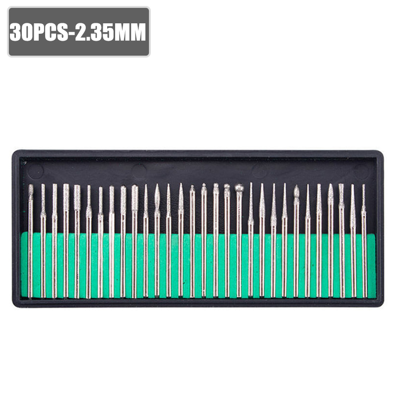 30pcs Shank Diamond Burs Set With Box For Dremel Electric Grinder Power Accessories Abrasive Drill Bit Rotary Tool Set 2.35/3mm|