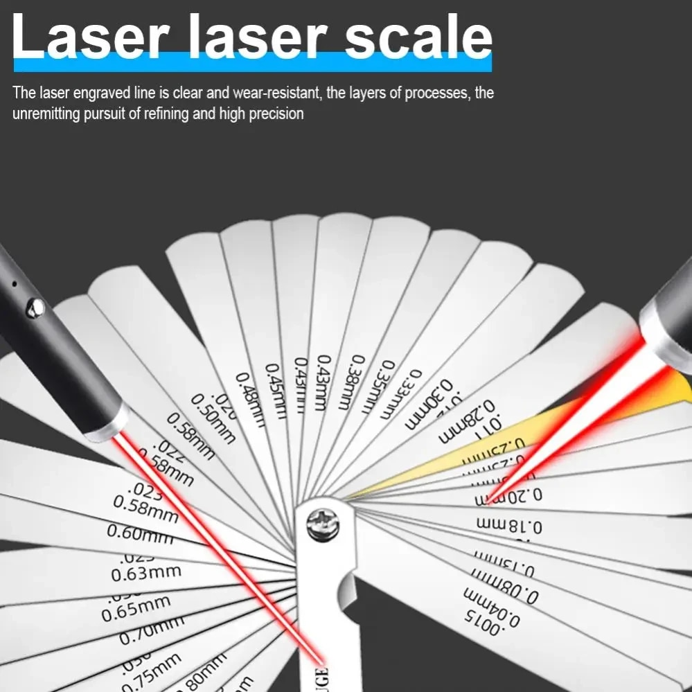 32 Blades Feeler Gauge Metric Gap Filler Gauge 0.04-0.88mm Stainless Steel High Precision Thickness Gauge Measurement Tool