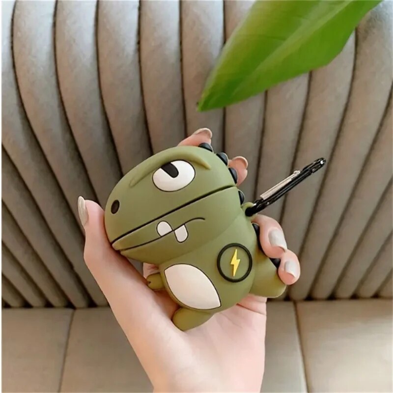 3D Cute Cartoon Green Dinosaur Silicone Protective Case Suitable For Airpods 1/2,Pro,3,Pro 2|