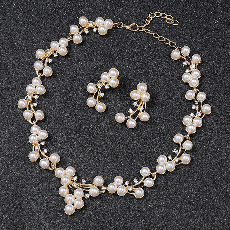 3Pcs Light Luxury Vintage Pearl Necklace Earrings For Women Fashion Versatile Jewelry Set Bridal Wedding Jewelry Accessories Qoddess