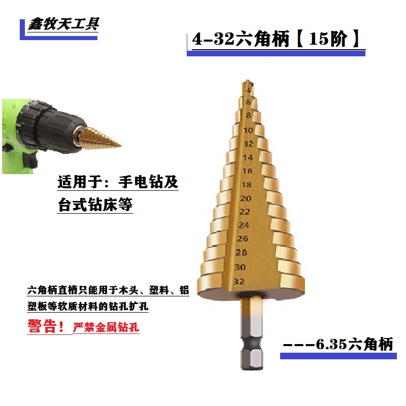 3Pcs Sets 4-12mm 4-20mm 4-32mm HSS Straight Groove Hex Shank Titanium Coated Step Drill Bit in Cloth Bag|