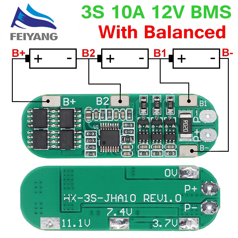 3S 10A 12V Lithium Battery Charger Protection Board For 3pcs 18650 Li-ion Battery Cell Charging BMS 11.1V 12.6V With Balanced|