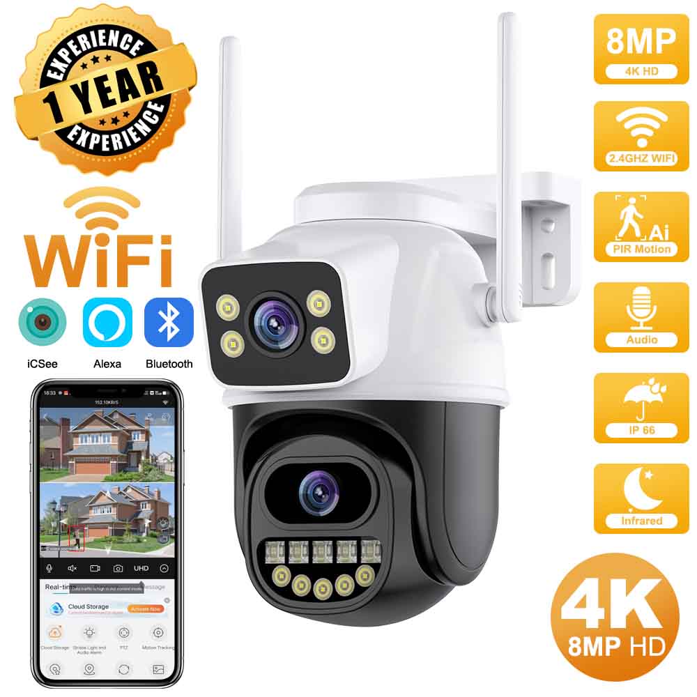 4K 8MP PTZ WIFI Camera Dual Lens Dual Screen IP Camera Outdoor 4MP HD Auto Tracking Security Protection CCTV Surveillance iCSee|