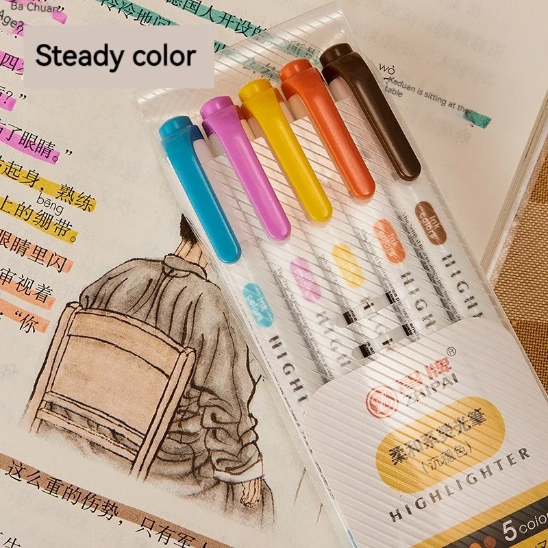 5 Colors/box Double Headed Highlighter Pen Set Fluorescent Drawing Markers Highlighters Pens Art Japanese Cute Pastel Stationery|