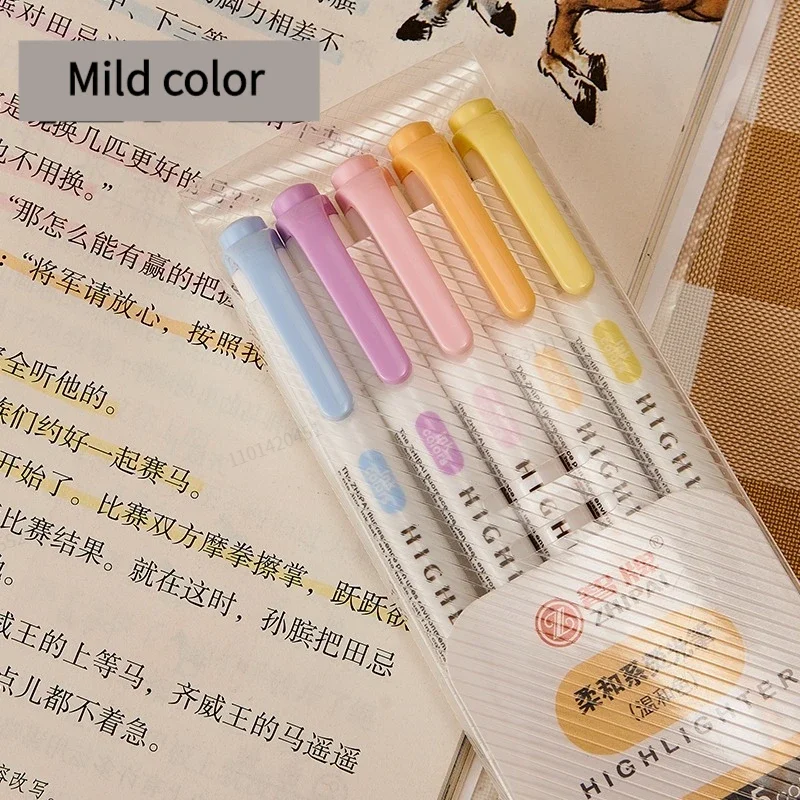 5 Colors/box Double Headed Highlighter Pen Set Fluorescent Drawing Markers Highlighters Pens Art Japanese Cute Pastel Stationery|