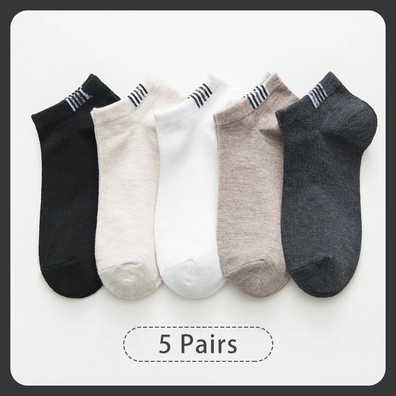 5 Pairs of Spring and Summer Mens and Womens Fourseason Simple Fashionable and Comfortable Sports Striped Socks