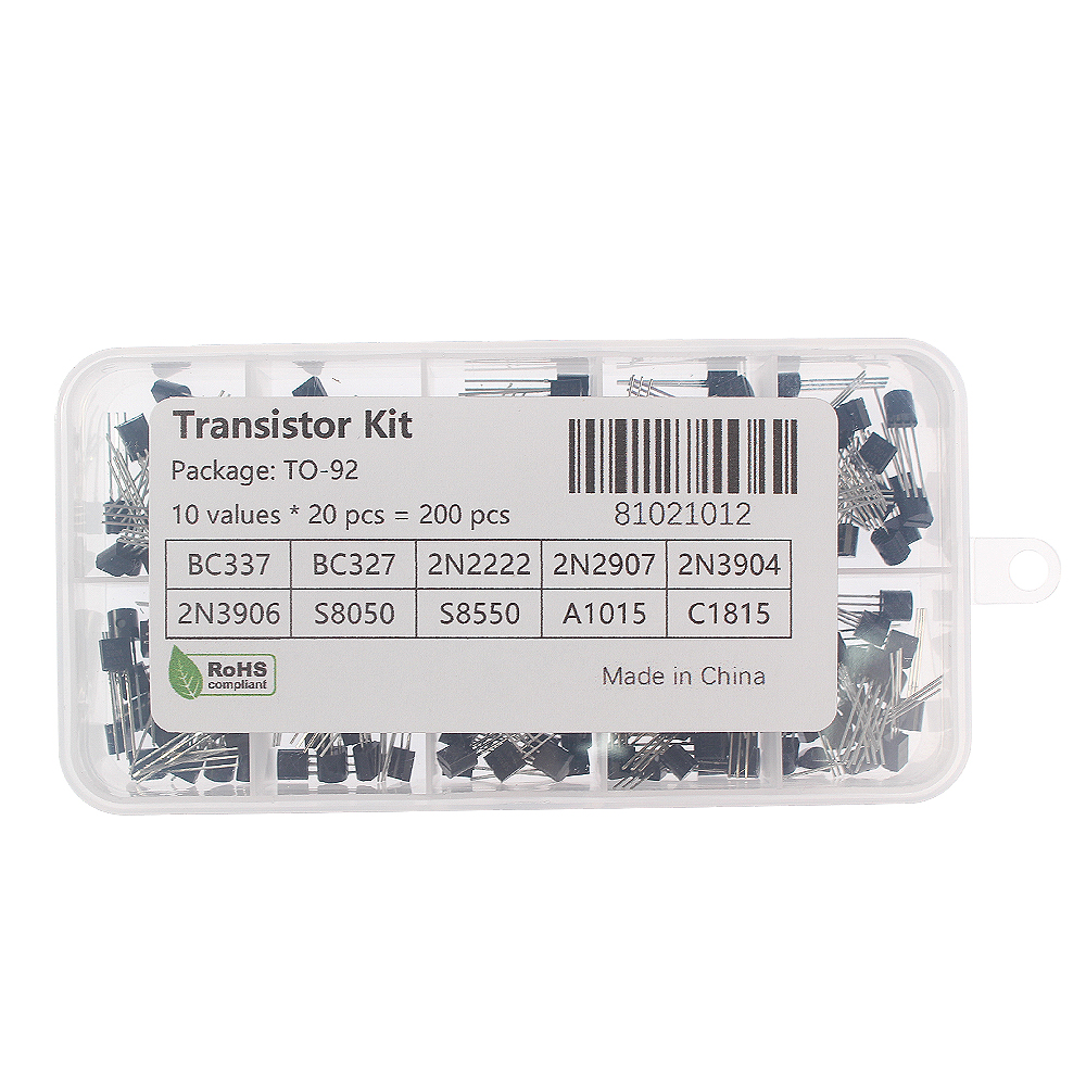 50-900PCS Transistors kit NPN PNP S8050 S8550 S9012 2N3904 2N3906 C1815 A1015 MJE13001 BC327 BC337 BC517 BC547 BC548 BC549 BC558