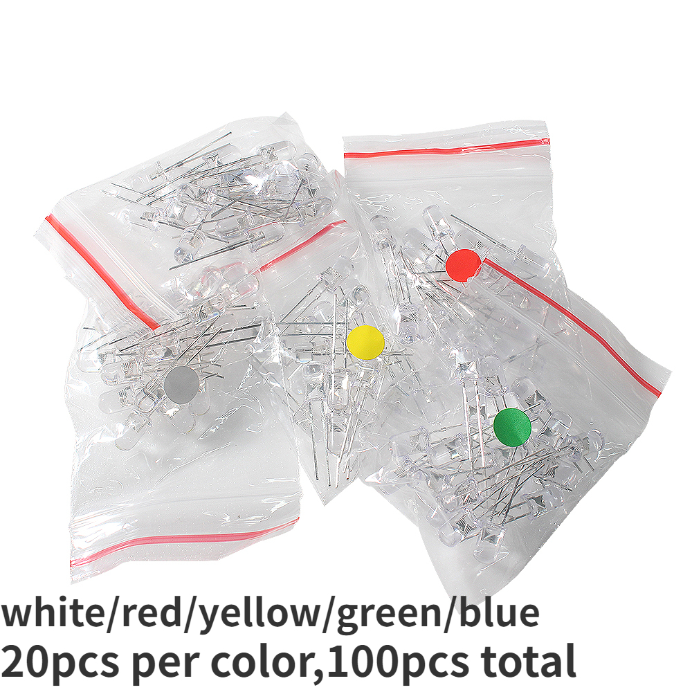 50100PCS Transparent LED Diode 5MM White Orange Red Yellow Blue Green Led Lights Diodes