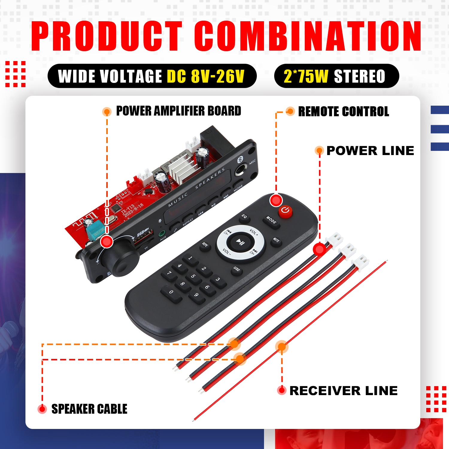 50W 150W Amplifier MP3 Decoder Board DIY Home Digital 12V Audio Power Bluetooth FM for Music Subwoofer Speakers Volume Control