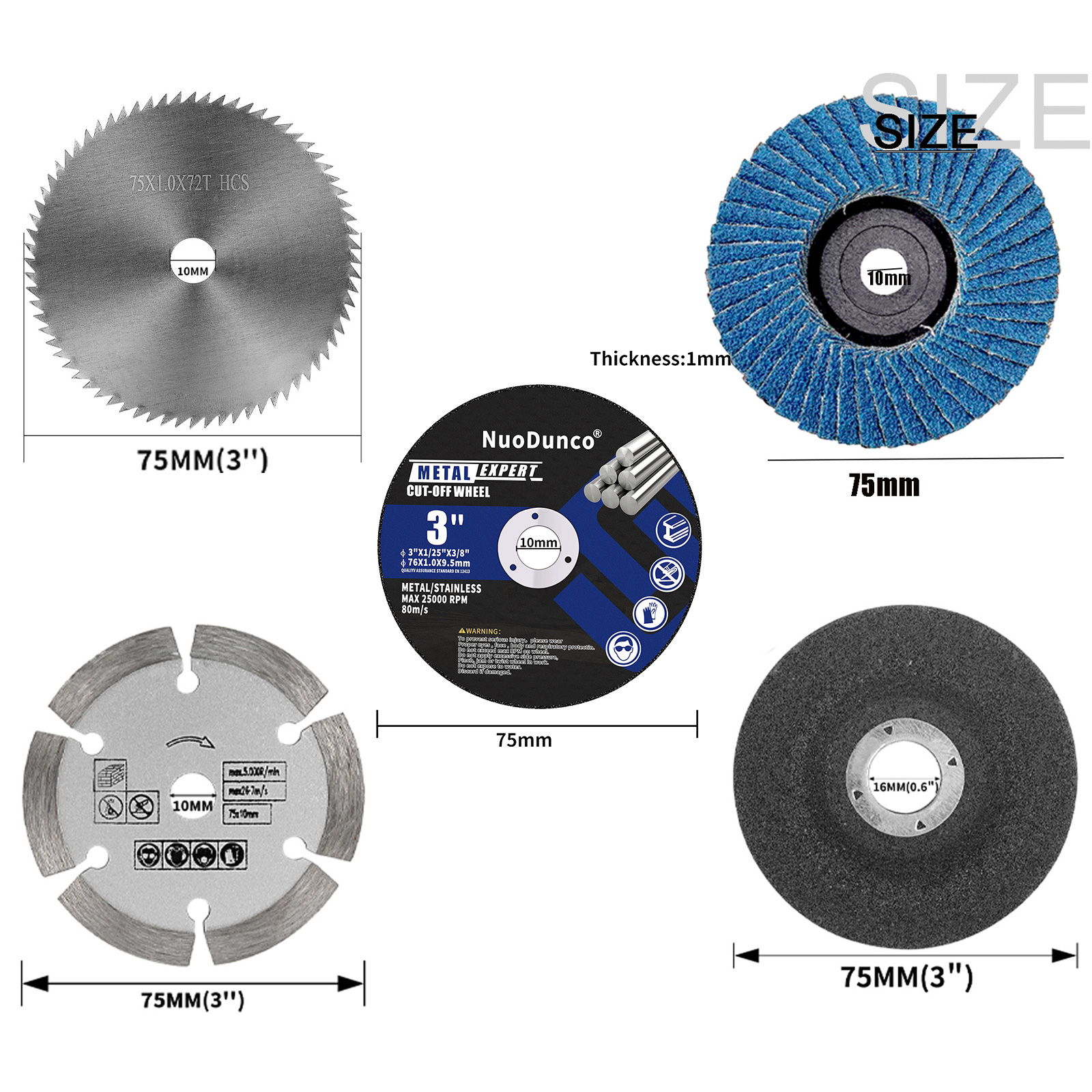5pcs/Set 75mm Cutting Disc 3 ” Grinding Wheel Metal Woodworking Stone Marble Cutting Grinding Saw Blade For Mini Angle Grinder