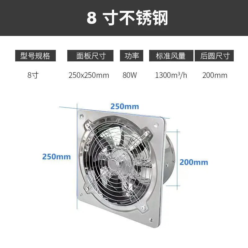 6/7/8inch Inline Extractor Exhaust fan Ventilation Pipe Fan Bathroom Kitchen Wall Window Stainless Steel Attic Ventilator