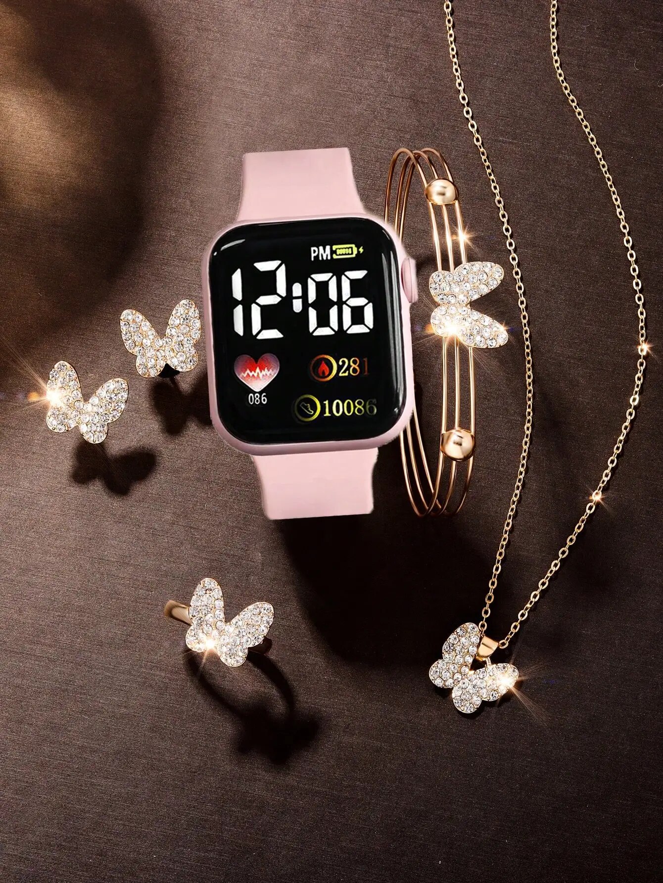 6 Pieces Of Love Square Numbers Display Electronic Watch Girl Boys And Butterfly Rhinestones