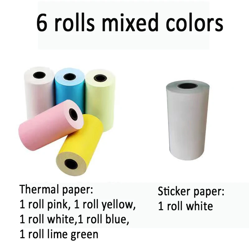 6 Roll 57*30mm Color Thermal Paper White Label Sticker Paper Colorful Photo Paper For PeriPage PAPERANG Mini Photo Printer