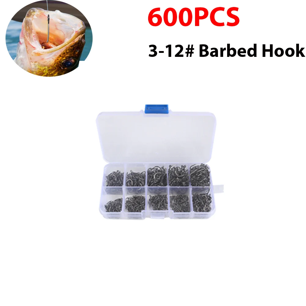 600-9000PCS 3-12# Fishing Hooks Set High Carbon Steel Barbed FishHooks harp Barbed Fishhooks Rock Fishing Tackle Accessories