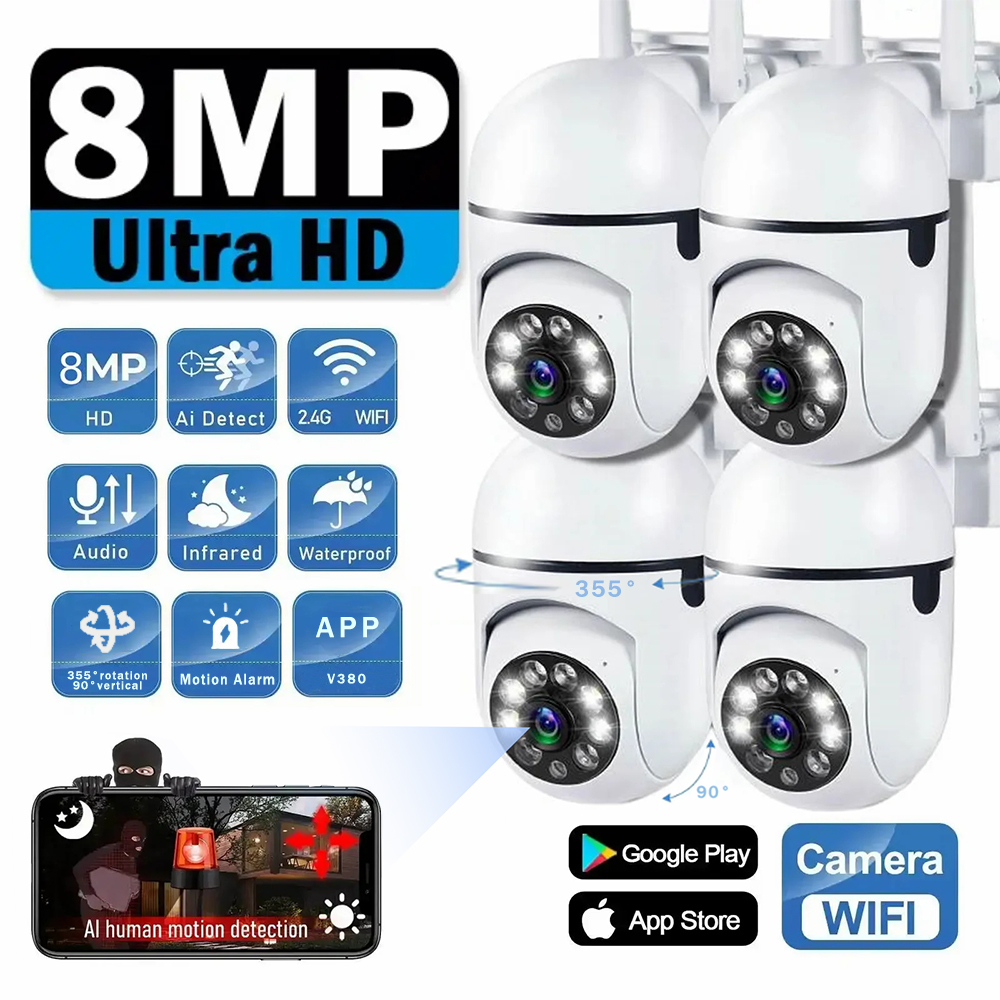 8MP Surveillance Camera PTZ CCTV IP Wifi Camera 4X Zoom Security Protection Wireless Home AI Human Trcking Outdoor Two Way Audio