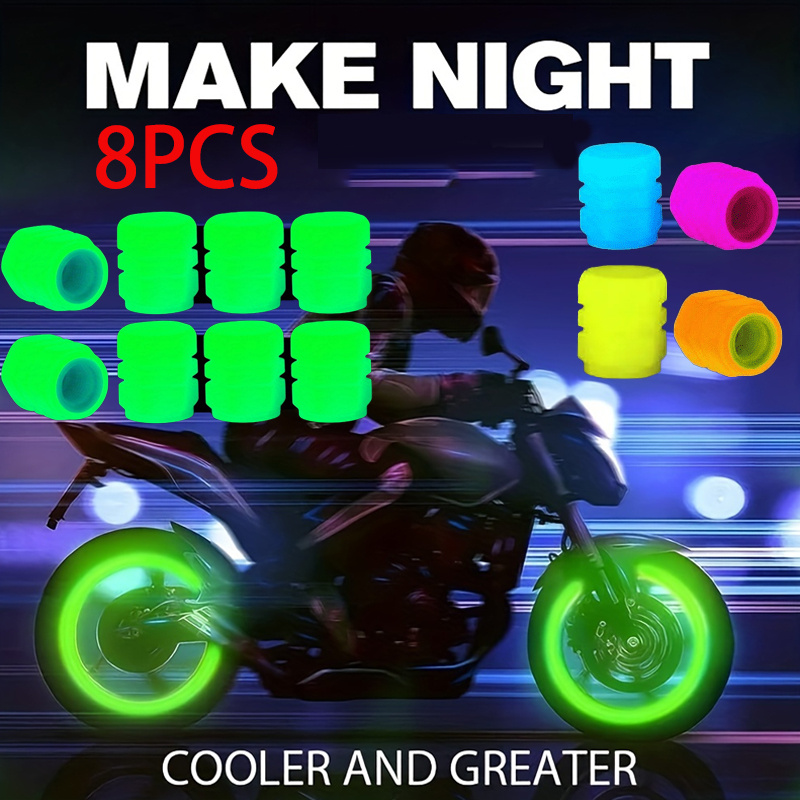 8pcs Car Tire Valve Stem Caps Fluorescence Luminous Air Caps Cover Ambient Light Universal for Cars Bike, Trucks and Motorcycles|