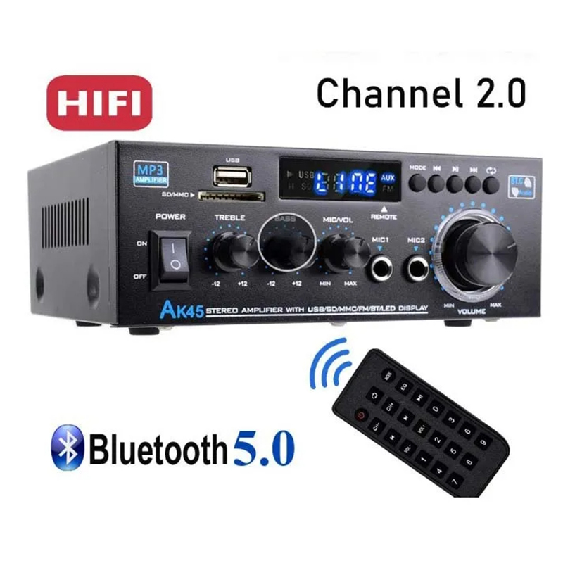 AK45 Home Power Amplifiers 2.0 Channel Bluetooth 5.0 Surround Sound FM USB MIC Remote Control Mini HIFI Digital Amp|