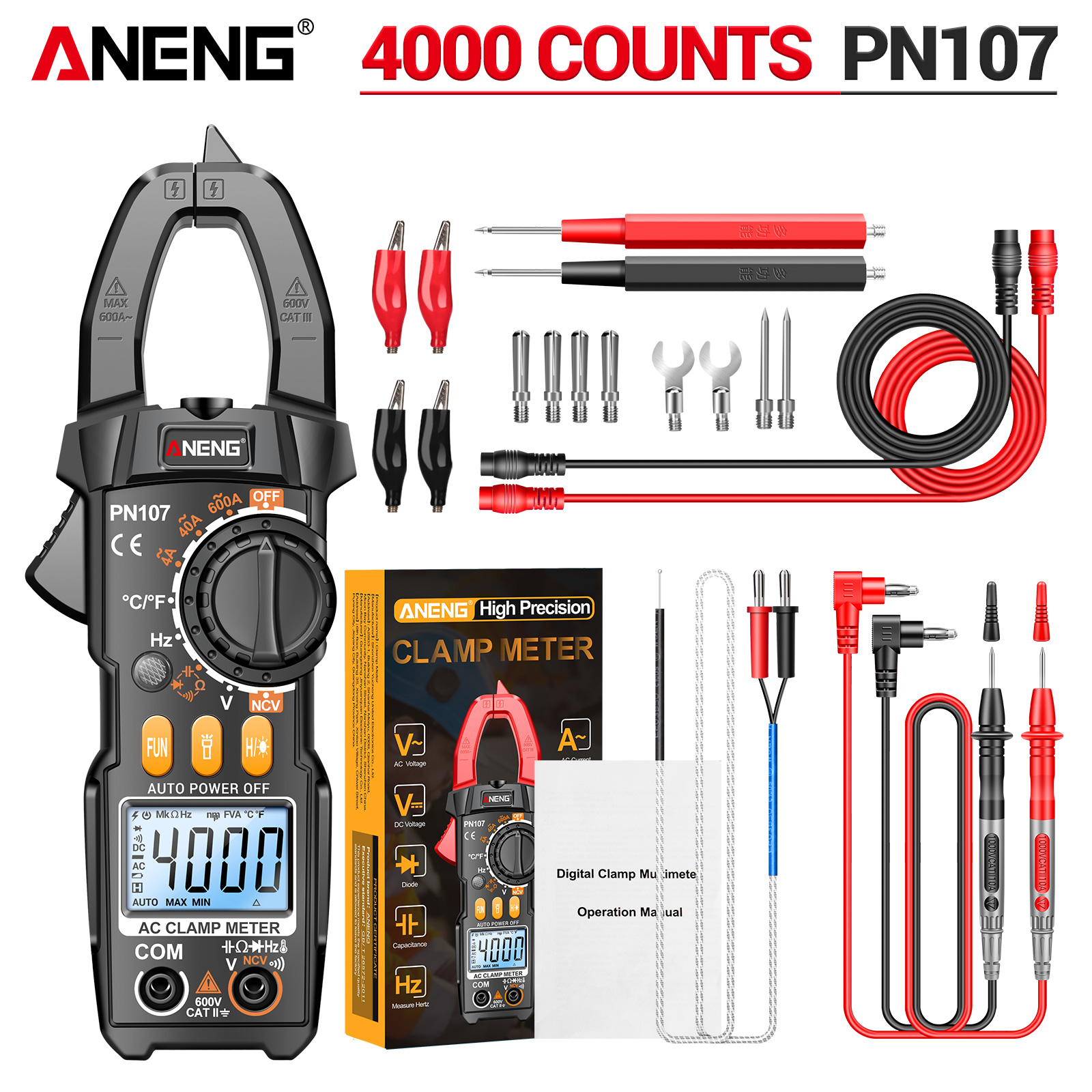 ANENG PN107 Digital Clamp Meter ACDC Voltage Temperature Test Multitester True RMS 4000 Count Electrical Multimeter Tester Tool