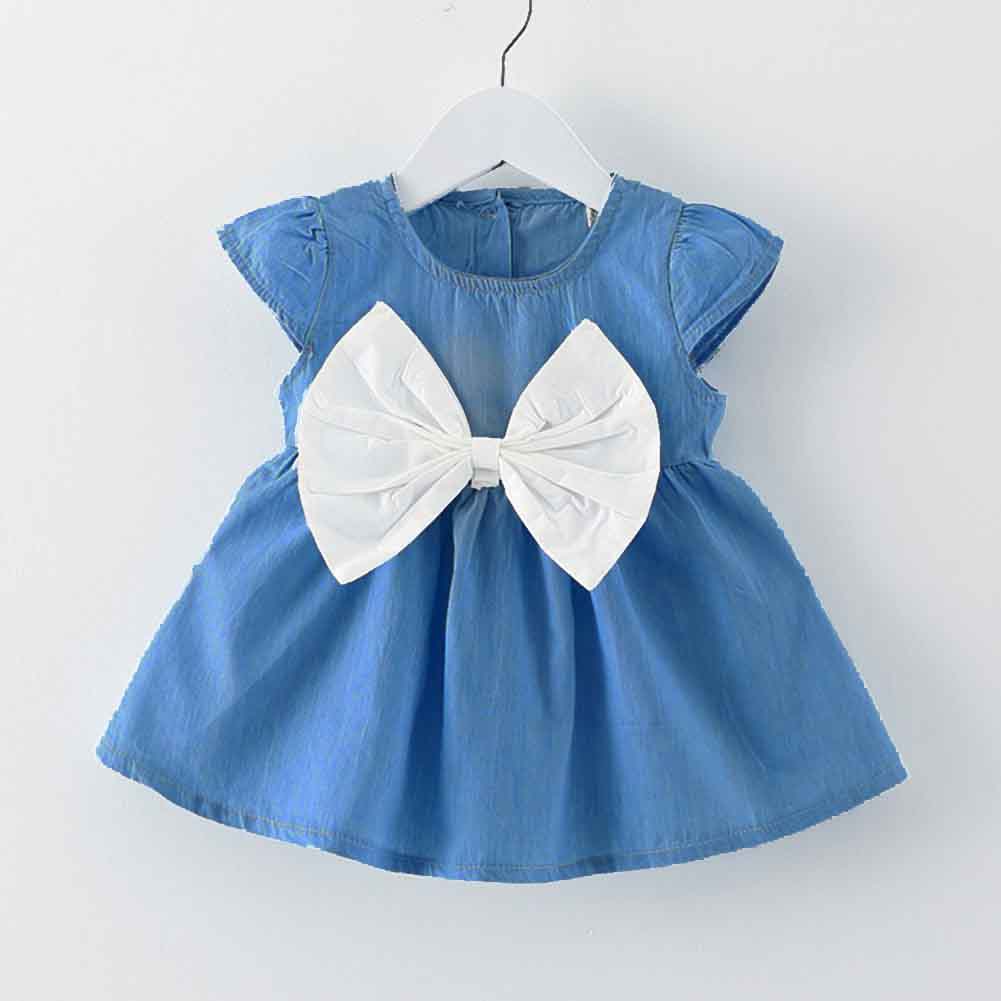 Big Bowknot Toddler Children Dress Solid Denim Baby Vestido Casual Infants Clothing Summer Tutu Kids Clothes for Girls 1-6years