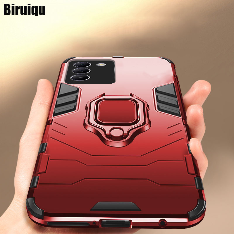 Biruiqu For VIVO V30 Lite Soft TPUHard PC Black Panther Shockproof Slim Protective Case Cover with Kickstand