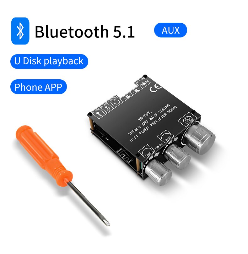 Bluetooth 5.0 2x50W HIFI Power Subwoofer Amplifier Board Stereo Digital Audio Power Amplifier AMP AUX USB T50L APP