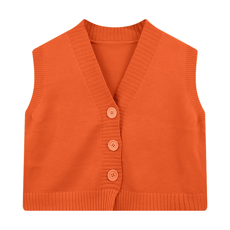 Button Down Sweater Vest for Women Teen-girl V-Neck Sleeveless Crop Knit Jacket Top Basic Outfit