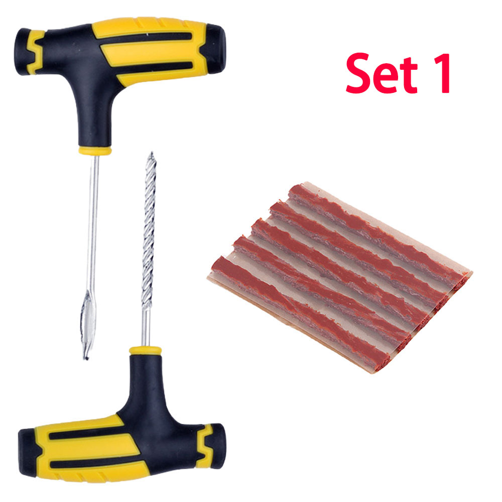 Car Tire Repair Tools Kit with Puncture Studding Plug Rubber Strips Tubeless Motorcycle Tyre Repair Tool Set for Auto Truck Tire