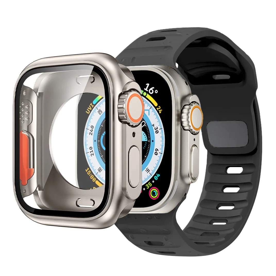 Case+Strap For Apple Watch Band 45mm44mm41mm 42 40mm Smart Silicone Bracelet Iwatch Series 3 4 5 6 Se 7 8 9 Change To Ultra Case