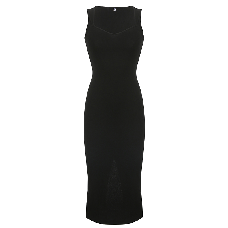 CIBBAR Basic Knit Long Dress Korean Fashion Square Collar Sleeveless Women’s Dresses Summer Casual Y2k Vintage All-match Outftis|