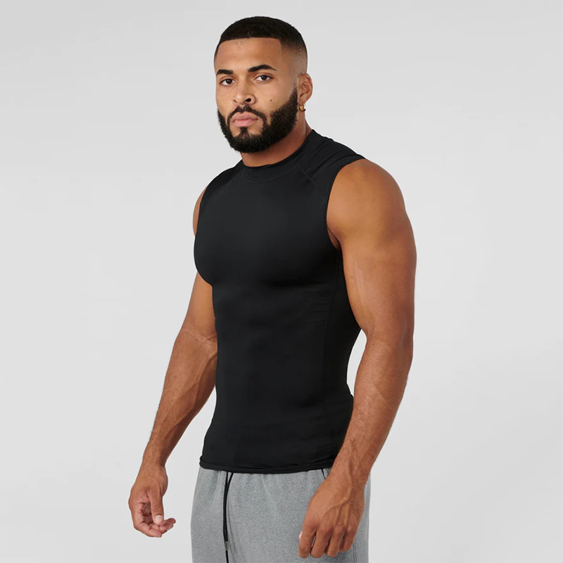 Compression Cutoff Tank Tops Muscle Mens Fitness Clothes Solid Sports Sleeveless Shirt High Neck Elastic Gym Bodybuilding Vest