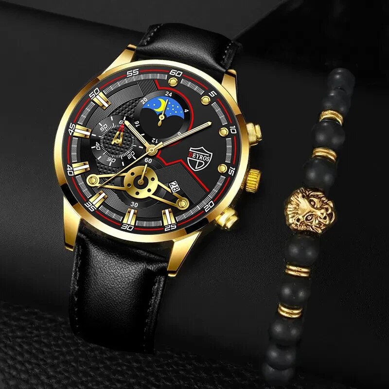 DEYROS Fashion Mens Sports Wristwatches Luxury Leather Quartz Calendar Watches For Men Business Casual Watches Reloj Hombre