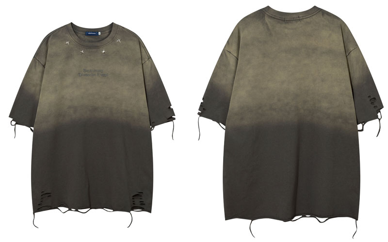Distressed Ripped T Shirts Metal Star Tee Emrboidery Vintage Loose Tshirt 2024 Men Harajuku Streetwear Oversized Hip Hop Tshirt