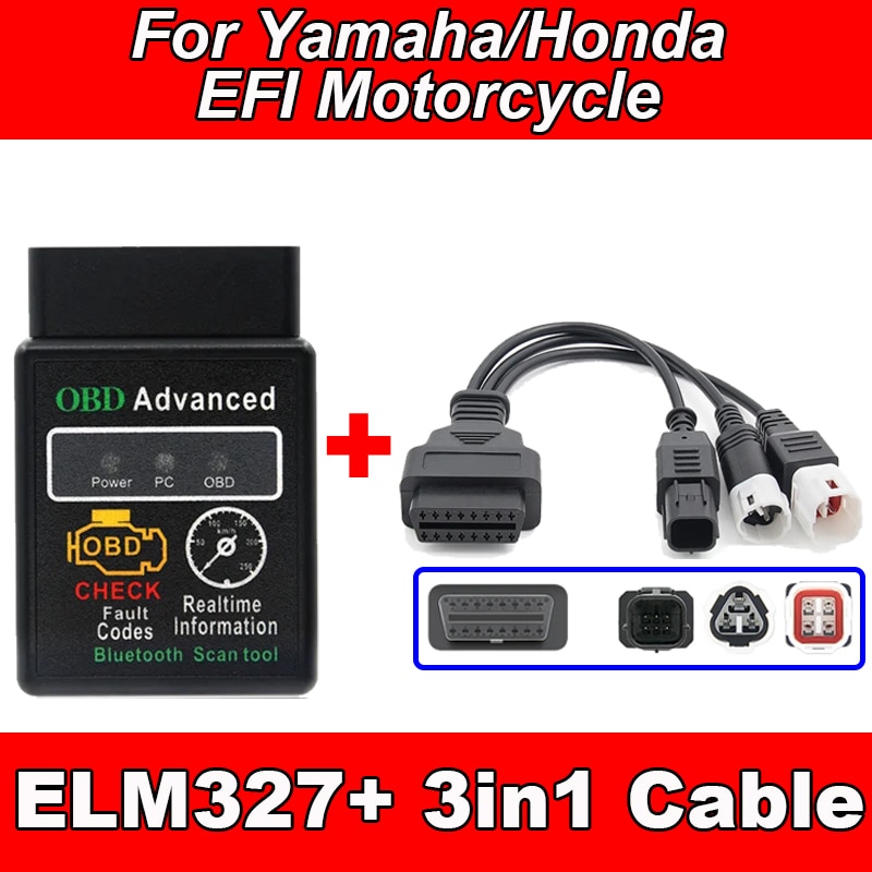 ELM327 V15 Bluetooth for Yamaha y15 EFI Motorcycle for Honda Motorbike 346pin To 16pin OBD2 Cable ELM 327 Fault Diagnosis