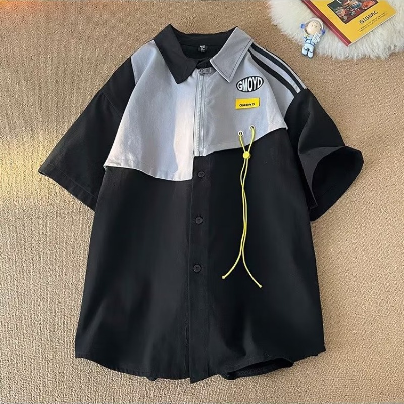 Fake twopiece shortsleeved shirt mens fashion brand summer design shirt casual loose American Retro Coat